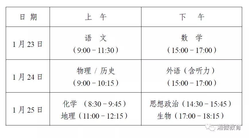 考试安排按照教育部统一安排,2021年湖南高考适应性考试时间定于2021年1月23日-1月25日举行,各科目具体考试时间安排如下。考试对象已报名参加我省...