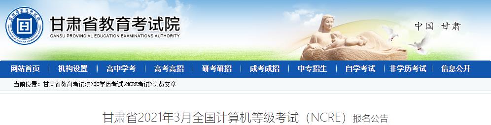 一、报名时间2021年3月甘肃计算机等级考试报名时间:2020年12月29日10:00-2021年1月12日16:00,报名工作...
