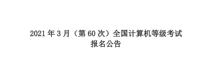 各学院:2021年3月第60次全国计算机等级考试报名工作即将开始,具体通知如下:一、报名时间及报名网址报名时间为2020年12月29日10:00至202...
