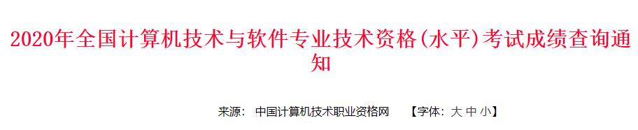 成绩查询时间:2020年12月18日起成绩查询方式:网上方式成绩查询网站:中国计算机技术职业资格网(www.ruankao.org.cn)2020年11...