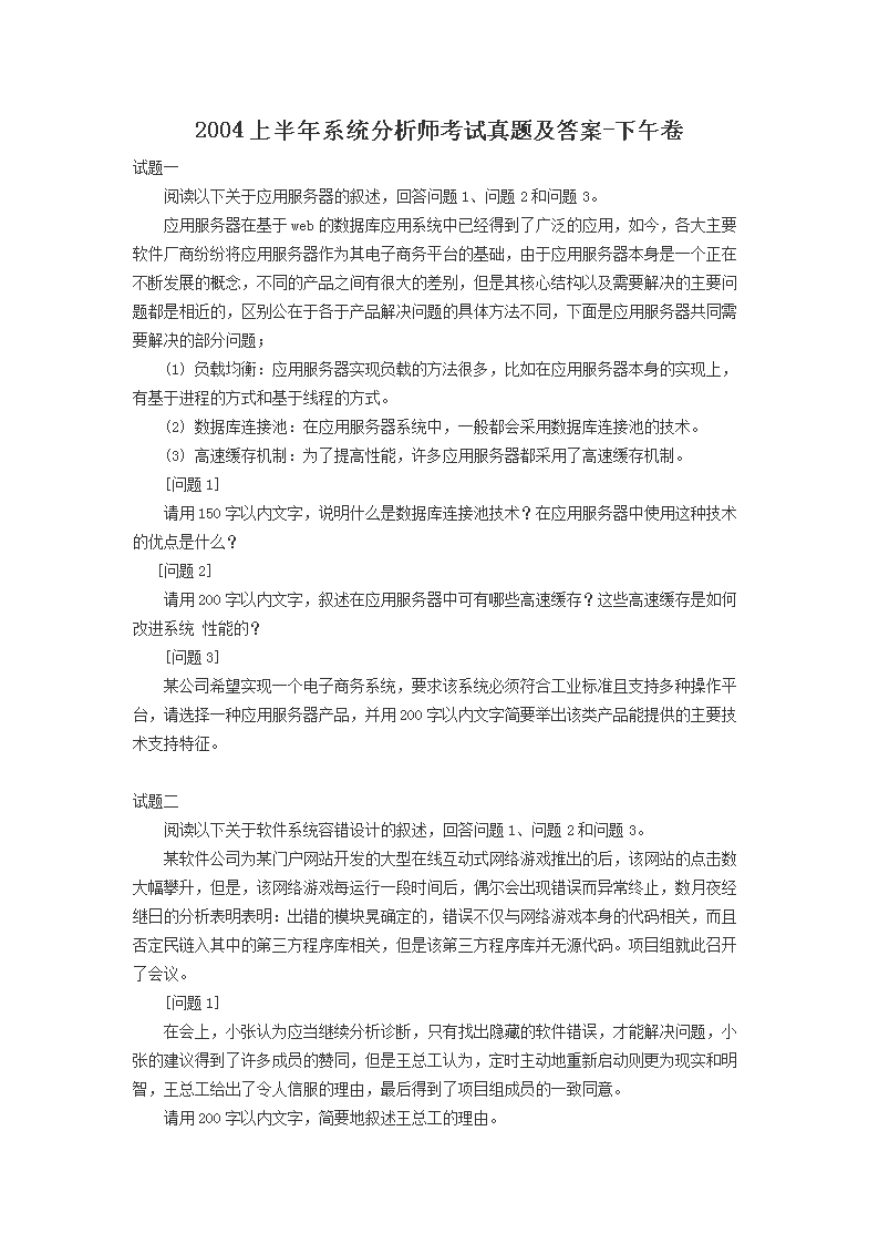 【文档名称】2004下半年系统分析师考试真题及答案-下午卷(Word版)【文档格式】Word版【文档下载】VIP会员文档下载【文档介绍】{{site_n...