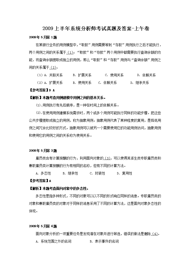 【文档名称】2009上半年系统分析师考试真题及答案-下午卷(Word版)【文档格式】Word版【文档下载】VIP会员文档下载【文档介绍】{{site_n...
