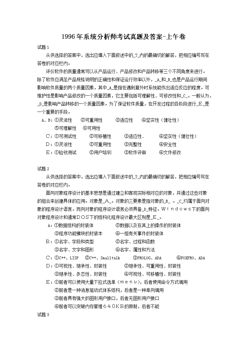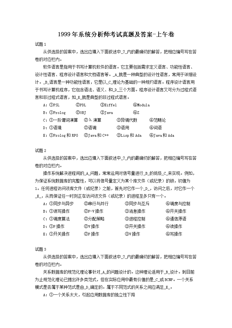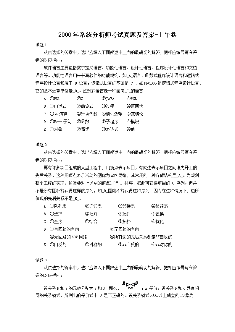 【文档名称】2000年系统分析师考试真题及答案-上午卷(Word版)【文档格式】Word版【文档下载】VIP会员文档下载【文档介绍】{{site_nam...