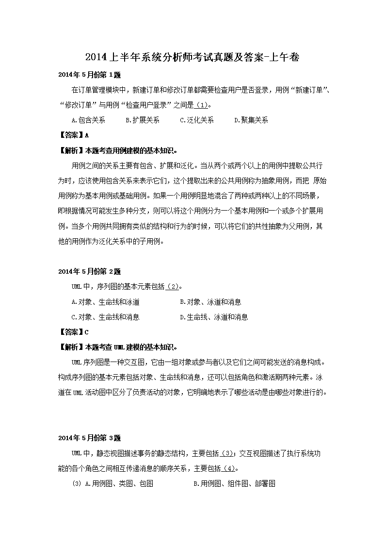 【文档名称】2014上半年系统分析师考试真题及答案-上午卷(Word版)【文档格式】Word版【文档下载】VIP会员文档下载【文档介绍】{{site_n...