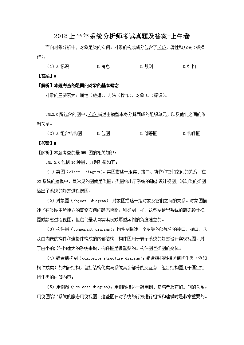 【文档名称】2018上半年系统分析师考试真题及答案-上午卷(Word版)【文档格式】Word版【文档下载】VIP会员文档下载【文档介绍】{{site_n...