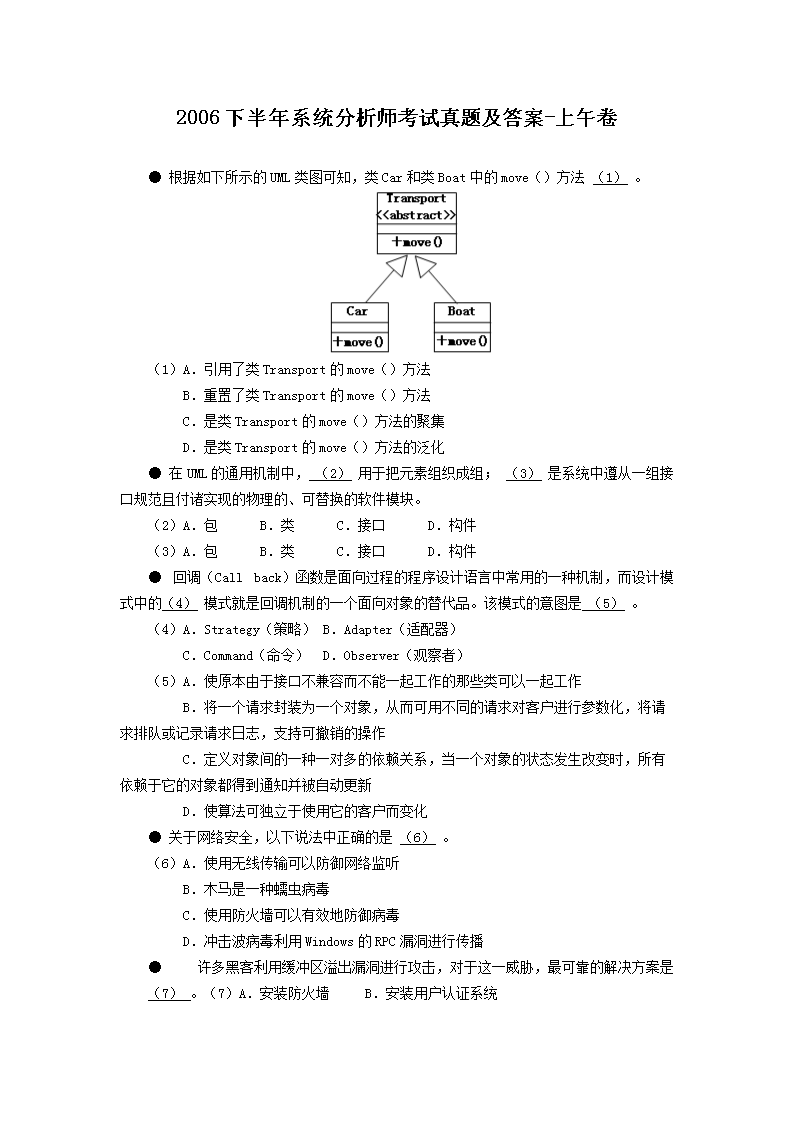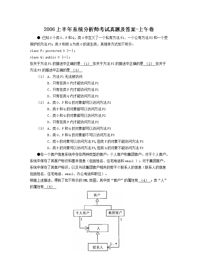 【文档名称】2006下半年系统分析师考试真题及答案-上午卷(Word版)【文档格式】Word版【文档下载】VIP会员文档下载【文档介绍】{{site_n...