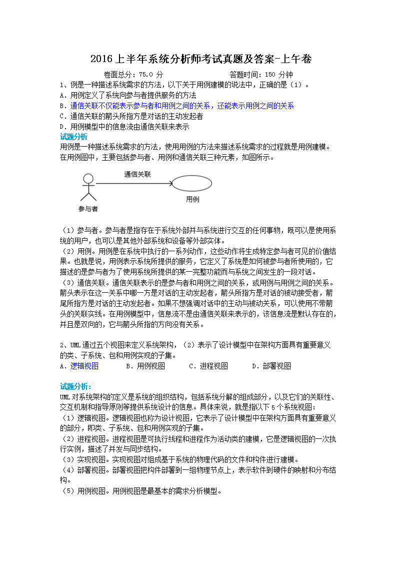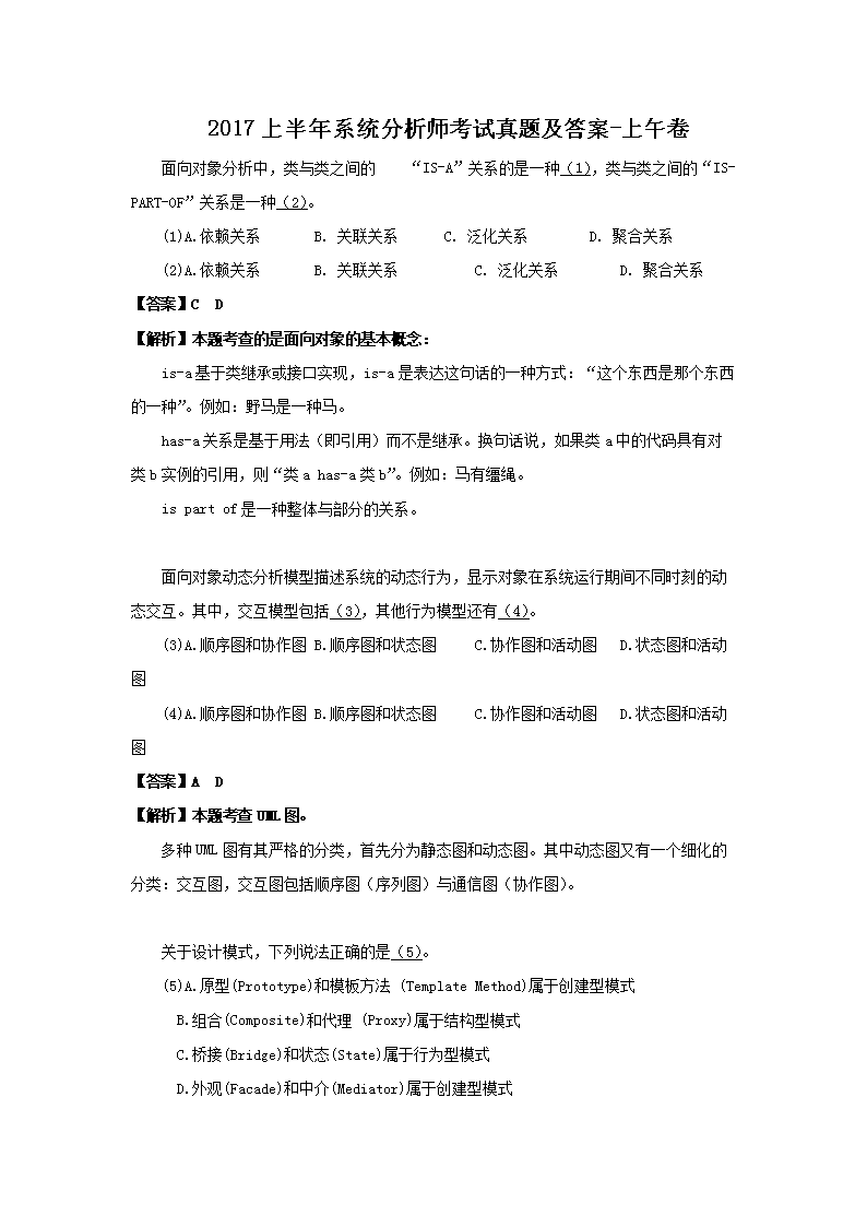 【文档名称】2017上半年系统分析师考试真题及答案-上午卷(Word版)【文档格式】Word版【文档下载】VIP会员文档下载【文档介绍】{{site_n...