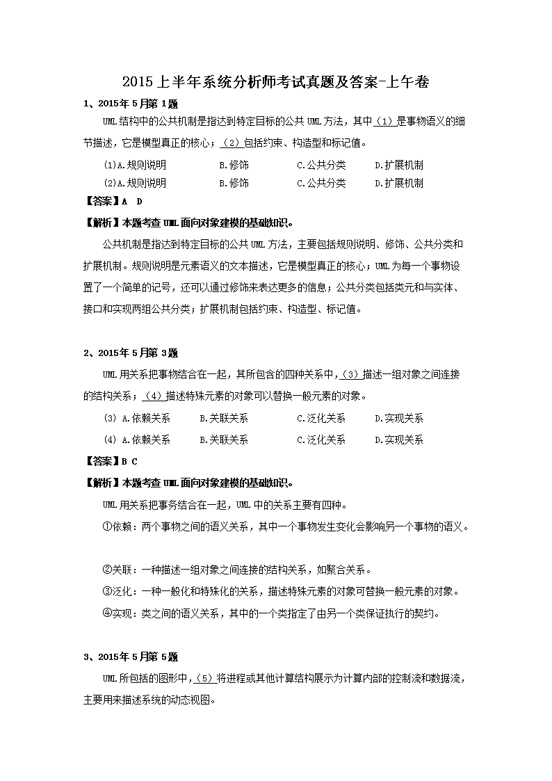 【文档名称】2015上半年系统分析师考试真题及答案-上午卷(Word版)【文档格式】Word版【文档下载】VIP会员文档下载【文档介绍】{{site_n...