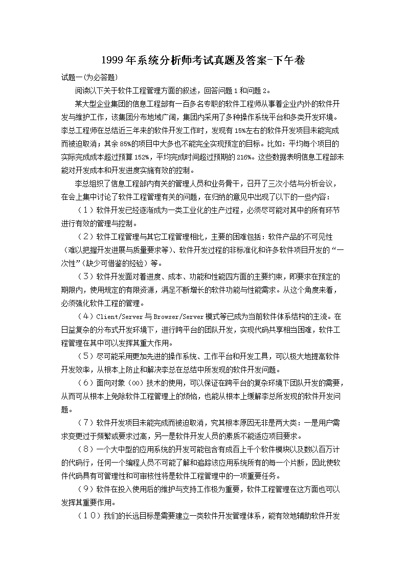 【文档名称】2000年系统分析师考试真题及答案-下午卷(Word版)【文档格式】Word版【文档下载】VIP会员文档下载【文档介绍】{{site_nam...