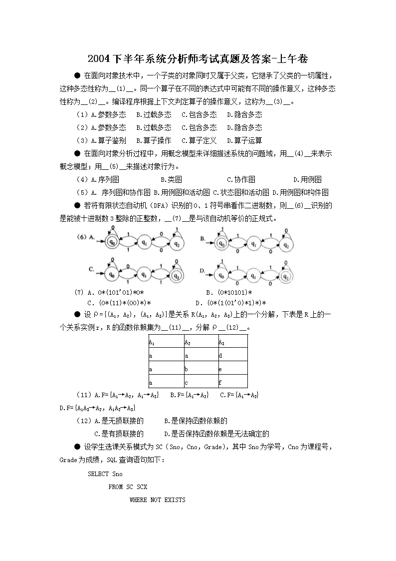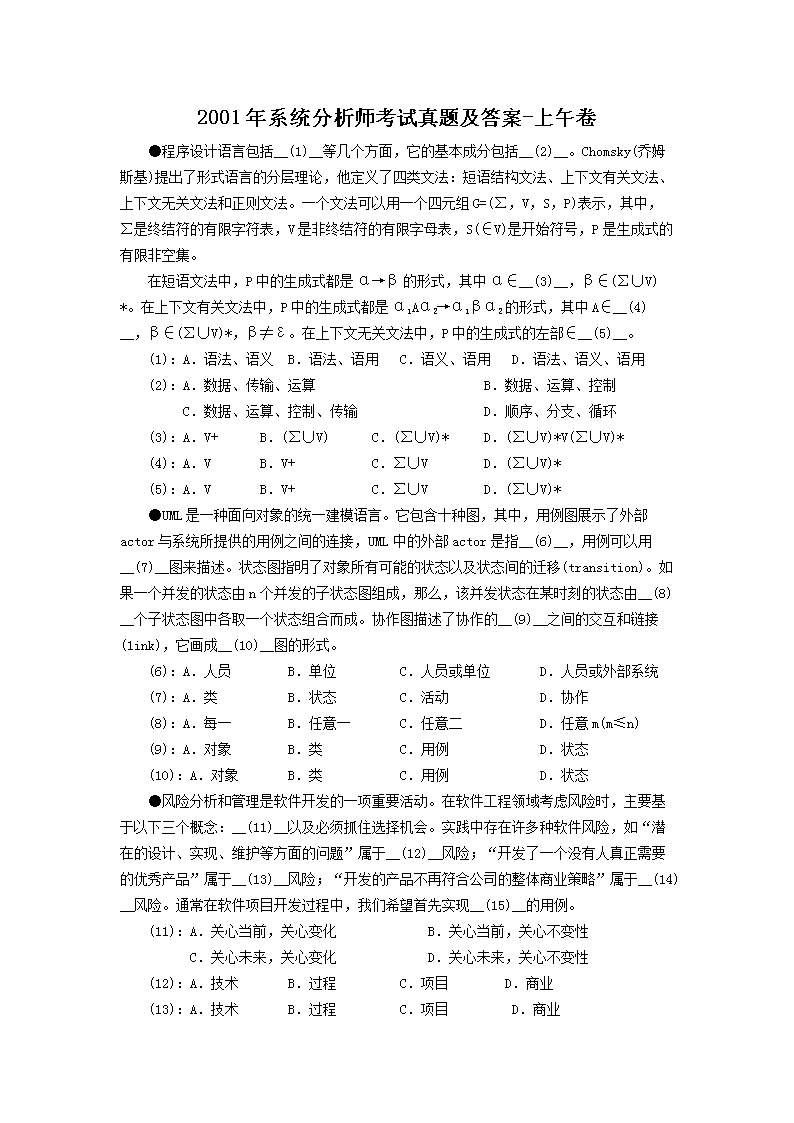 【文档名称】2001年系统分析师考试真题及答案-上午卷(Word版)【文档格式】Word版【文档下载】VIP会员文档下载【文档介绍】{{site_nam...