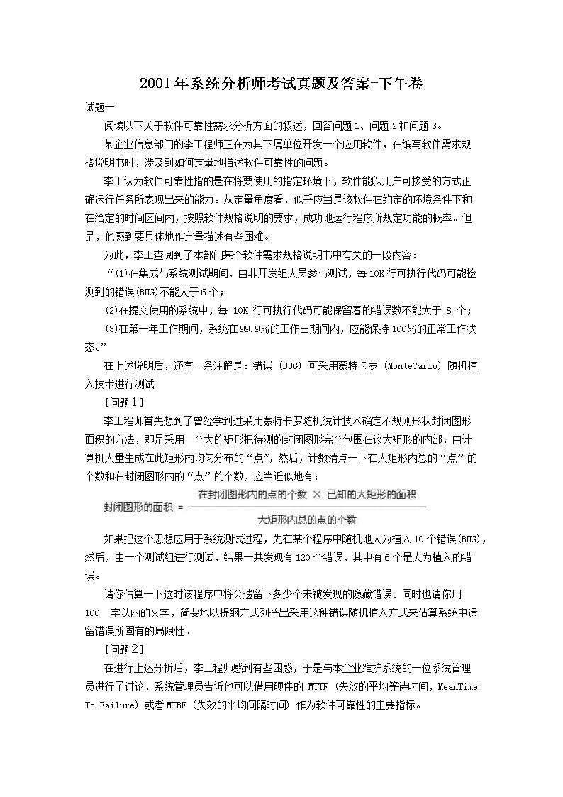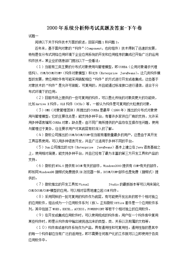 【文档名称】2001年系统分析师考试真题及答案-下午卷(Word版)【文档格式】Word版【文档下载】VIP会员文档下载【文档介绍】{{site_nam...