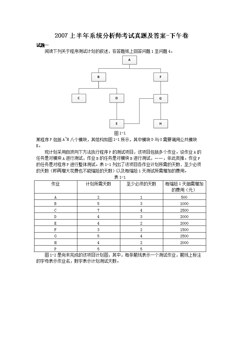 【文档名称】2007下半年系统分析师考试真题及答案-下午卷(Word版)【文档格式】Word版【文档下载】VIP会员文档下载【文档介绍】{{site_n...