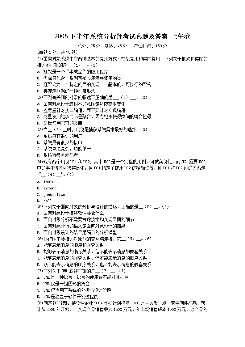 【文档名称】2005下半年系统分析师考试真题及答案-上午卷(Word版)【文档格式】Word版【文档下载】VIP会员文档下载【文档介绍】{{site_n...