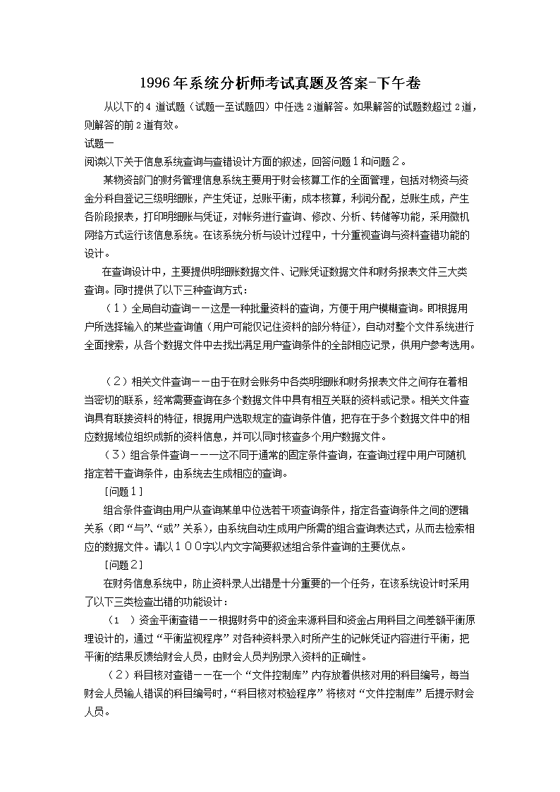 【文档名称】1996年系统分析师考试真题及答案-下午卷(Word版)【文档格式】Word版【文档下载】VIP会员文档下载【文档介绍】{{site_nam...