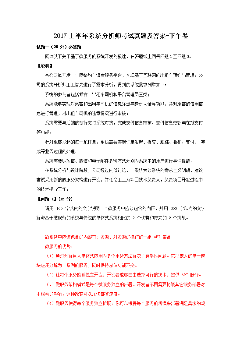 【文档名称】2017上半年系统分析师考试真题及答案-下午卷(Word版)【文档格式】Word版【文档下载】VIP会员文档下载【文档介绍】{{site_n...
