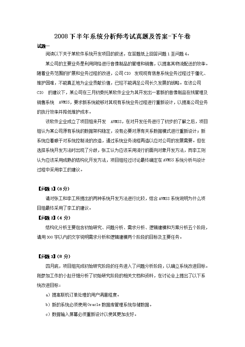 【文档名称】2008下半年系统分析师考试真题及答案-下午卷(Word版)【文档格式】Word版【文档下载】VIP会员文档下载【文档介绍】{{site_n...