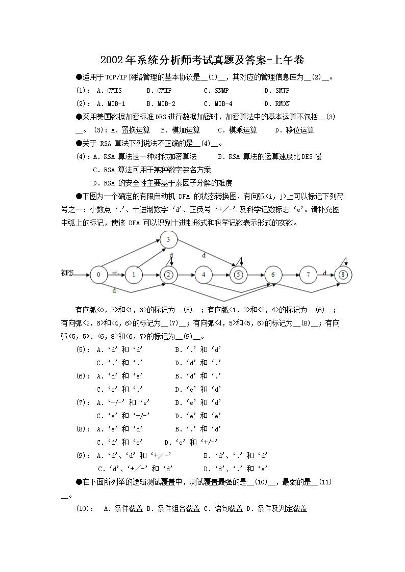 【文档名称】2002年系统分析师考试真题及答案-上午卷(Word版)【文档格式】Word版【文档下载】VIP会员文档下载【文档介绍】{{site_nam...