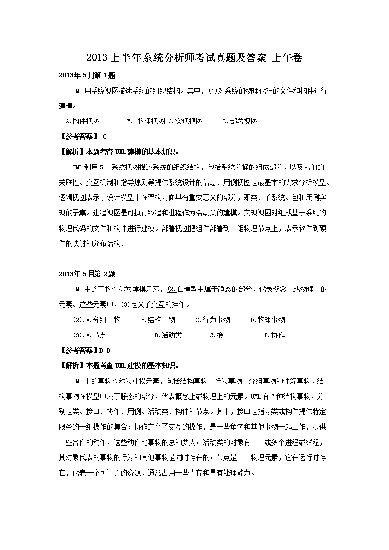 【文档名称】2013上半年系统分析师考试真题及答案-下午卷(Word版)【文档格式】Word版【文档下载】VIP会员文档下载【文档介绍】{{site_n...