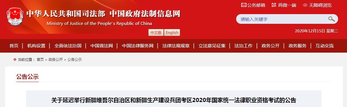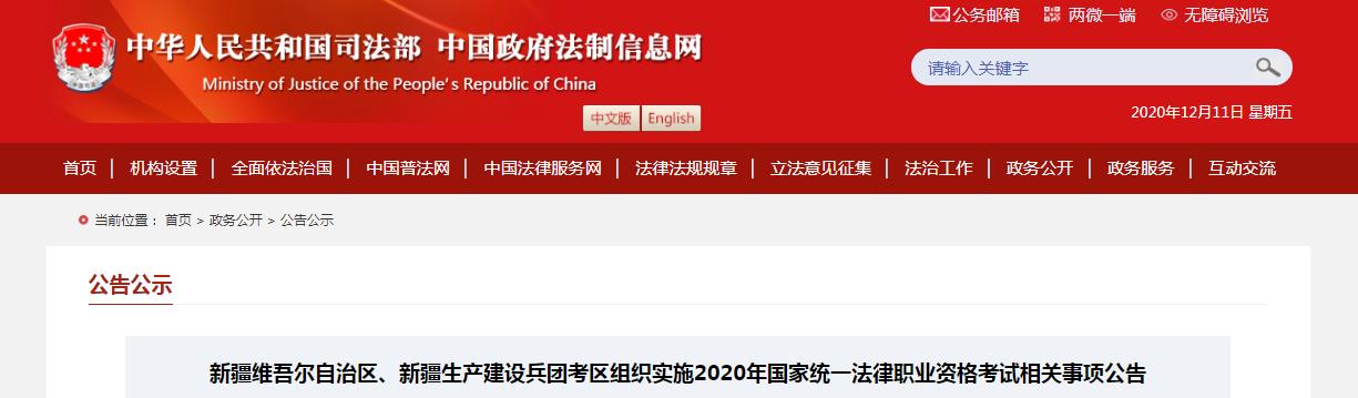 参考人员范围在新疆维吾尔自治区、新疆生产建设兵团考区报名参加2020年法律职业资格考试客观题考试的人员。打印准考证报名人员可于12月15日至12月18日...