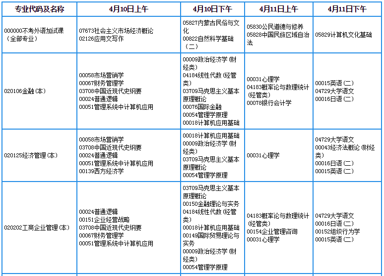 内蒙古锡林2021年4月自学考试时间安排在4月10日星期六、4月11日星期日(上午9:00-11:30;下午14:30-17:00)举行。点击查看完整版>>>2021年4月内蒙古自...